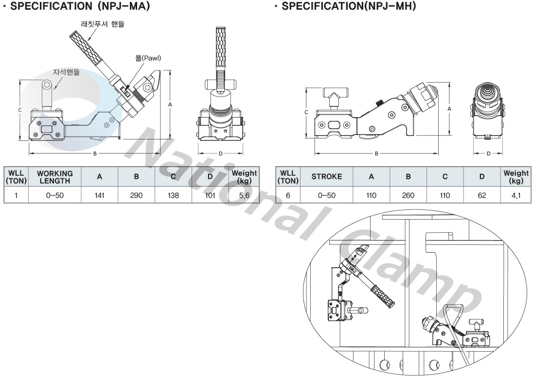 - NPJ-MA는 래칫푸셔의 핸들을 작동하여 대상물을 밀어내고,